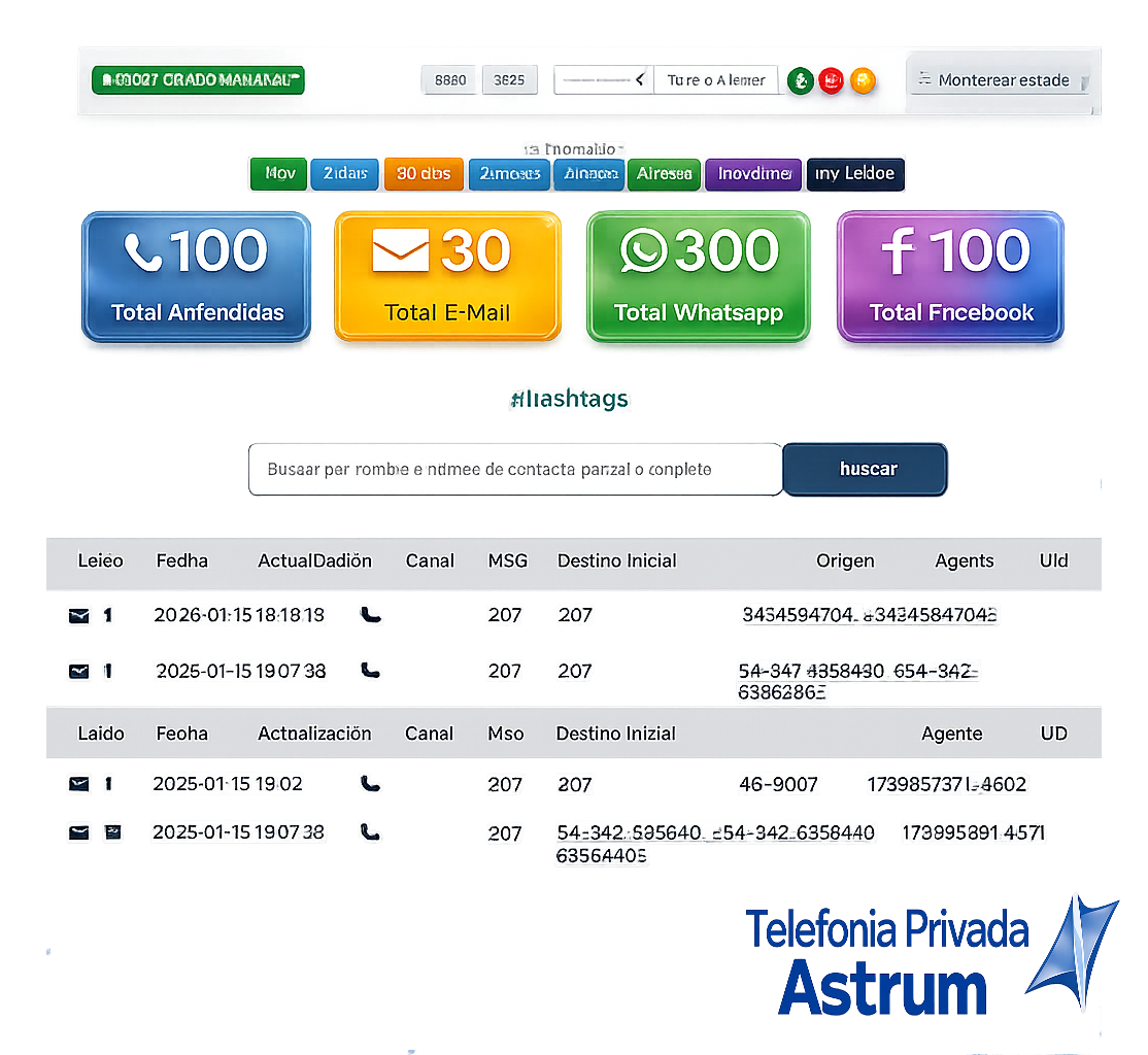El Asistente Virtual de ChatBot 40 Usuarios de Astrum es una solución omnicanal diseñada para empresas que buscan automatizar procesos, mejorar la atención al cliente y centralizar todas las comunicaciones digitales en una única plataforma profesional. Con soporte para WhatsApp, redes sociales y WebChat, permite gestionar grandes volúmenes de consultas con eficiencia, rapidez y personalización.